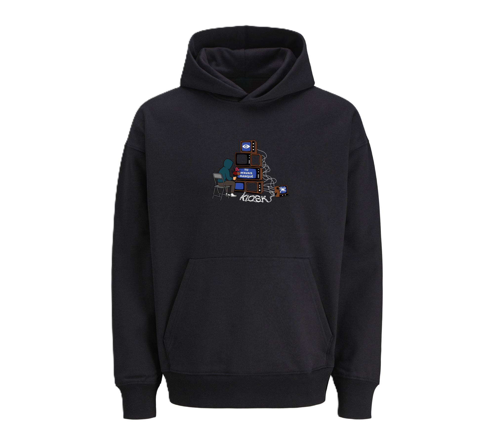 • Design kiosk avec télés suspendues brodé à l’arrière.